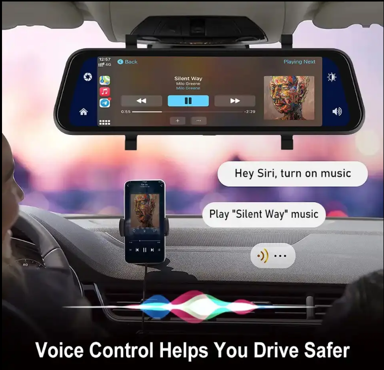 Intelligent Driving with Voice Control : Just turn on BT and wirelessly connect to Carplay and Android Auto. With sensitive touch and voice control, you can access maps, videos, music, and other apps as you like. You can also answer and make calls or navigate, etc. while driving without distractions. Say hello to a safer and smarter experience with this rear view mirror